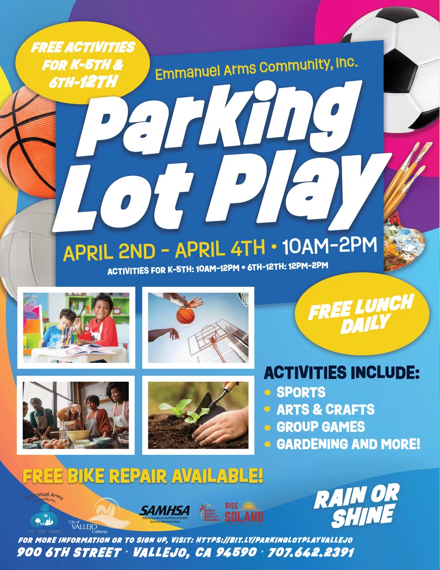 🚲 Rockville Bike is heading to Vallejo! We’re stoked to partner with Emmanuel Arms Community, Inc. for their "Parking Lot Play" event. Catch our team at 900 6th Street from April 2nd–4th providing FREE bike repairs for K-12th graders. Let’s get those bikes back on the road! 🛠️✨